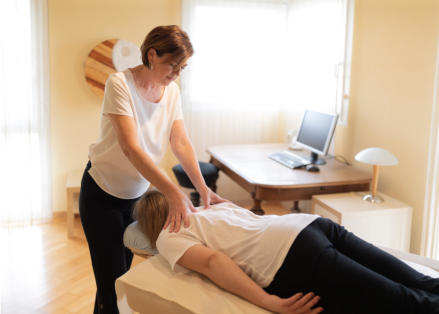 fortifiante. Le client est allongé, habillé, sur une table de massage